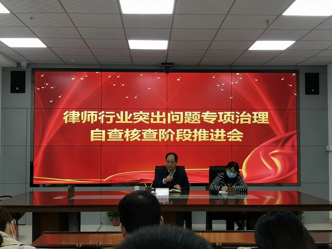 4月23日,西安市新城区司法局组织召开律师行业突出问题专项治理自查核查阶段推进会,区各律师事务所、公证处和司法鉴定机构参加会议。局党组书记、局长郭满鸿,公律科科长周京出席会议。